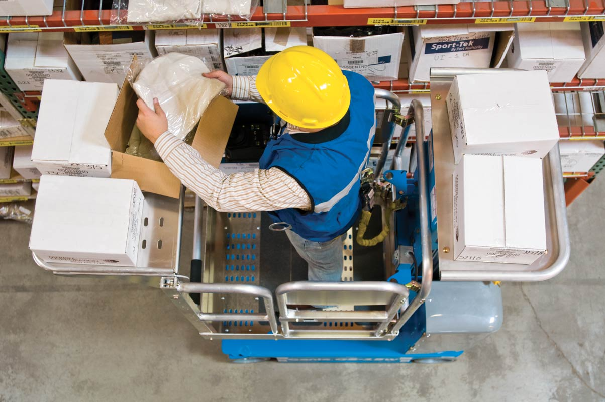 Подъёмник Genie® QuickStock™ QS™-15 стал безопасной и эффективной заменой традиционным лестницам и вышки-турам. Его ключевое преимущество — минимальный радиус поворота, благодаря которому техника легко маневрирует в узких проходах и между стеллажами. Удобная платформа с низкой посадкой и продуманными элементами доступа упрощает снятие и укладку грузов с полок, снижая нагрузку на оператора.