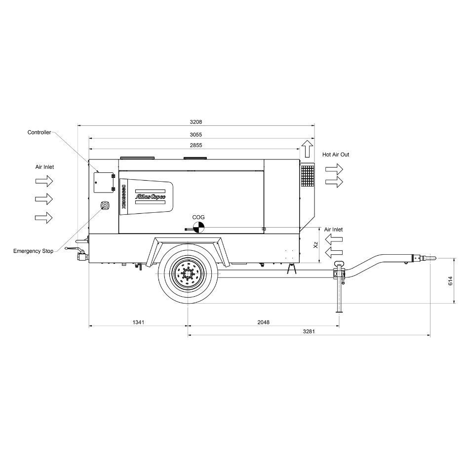 Передвижной компрессор с электродвигателем модели XAMS 396E с давлением 8,6 бар и производительностью 23,4 м3/мин — энергоэффективный, надежный и мобильный источник сжатого воздуха для питания абразивоструйного и другого пневматического оборудования.